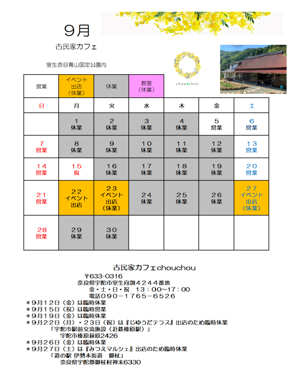 ☆9月22日㈪・23日㈷は『じゆうだテラス』出店のため臨時休業